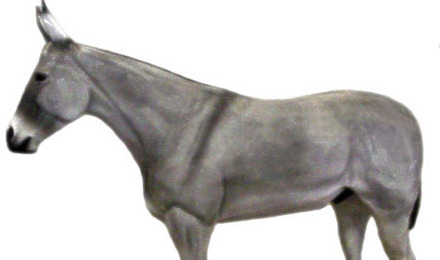 This statue represents the Saddle Horse Mule. It is 15 hands, 18 inches wide at the chest, 8 feet 3 inches in length, 6 feet 4 inches at the highest point and weighs 200 pounds.